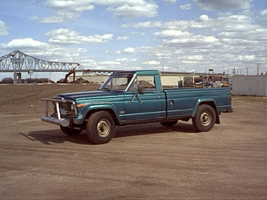 Specs: 360 auto tranny 208 t-case 8-bolt axles 4:11 gears. This photo was taken in downtown Winona with the bridge in the background crossing the Mississippi river and landing in Wisconson. Notice the truck is off-road.
